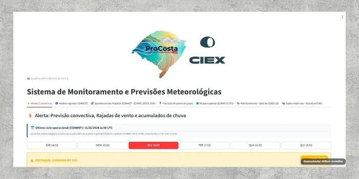 Inicialmente, está em desenvolvimento um sistema de monitoramento ambiental da costa. O foco é no Litoral Norte e, neste primeiro momento, os trabalhos são feitos em Imbé e Tramandaí.