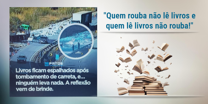 Uma carreta carregada de livros tombou na rodovia Fernão Dias, em Minas Gerais, mas, em contraste com outros acidentes, a carga não foi saqueada. O incidente ocorreu na altura de Carmópolis de Minas, com a carga espalhada pela pista, mas, ao invés de saques, a cena chamou atenção pela ausência de roubo dos livros.